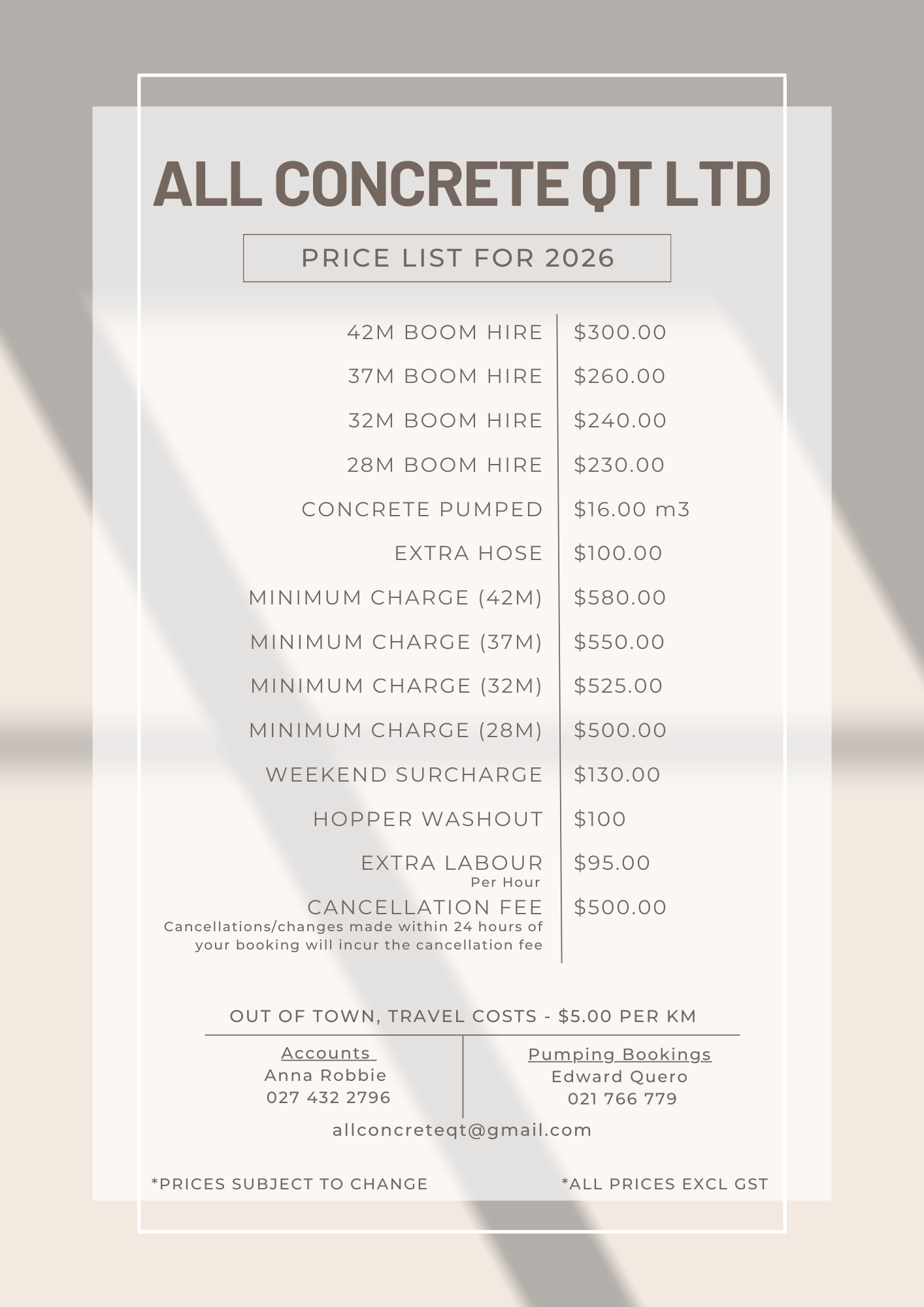 ALL Concrete QT LTD believe in transparency and value. Our pricing reflects the high-quality and expert craftsmanship we provide. If you have any questions about our services, contact us today!